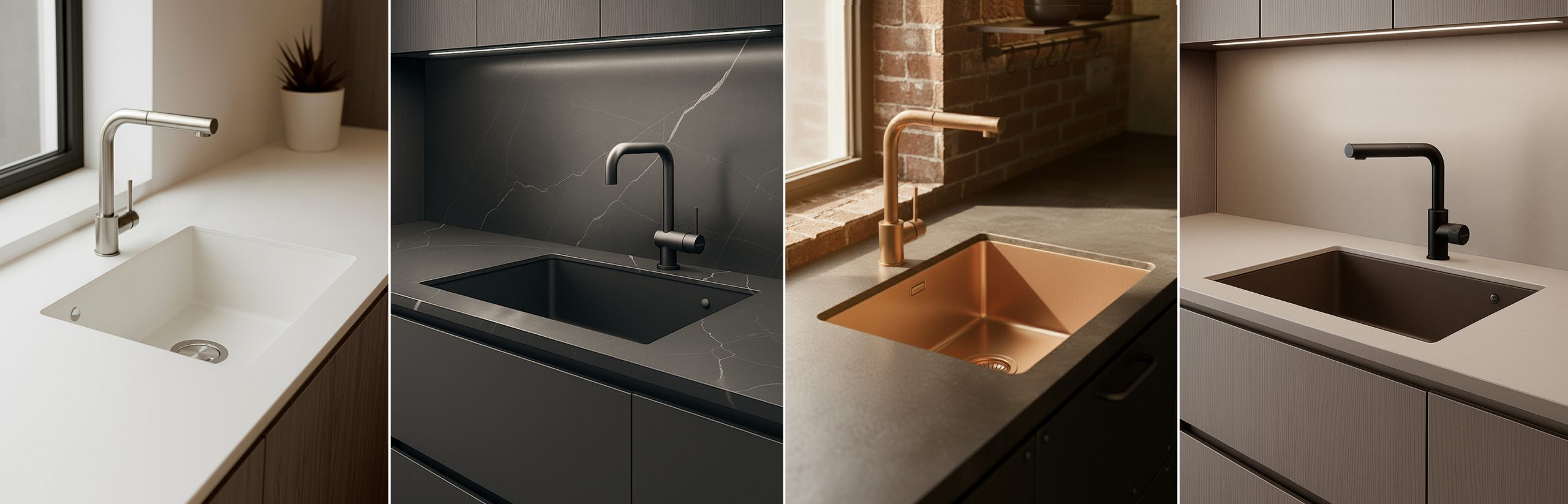 - Ce qui fonctionne bien : éviers en inox encastrés pour une continuité visuelle ou blancs mats en pose sous ou sur plan.