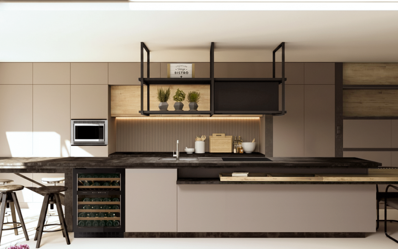 Una vinoteca integrada, por ejemplo, permite que la isla siga formando parte tanto del momento de cocinar… como del de sentarse a disfrutar después.