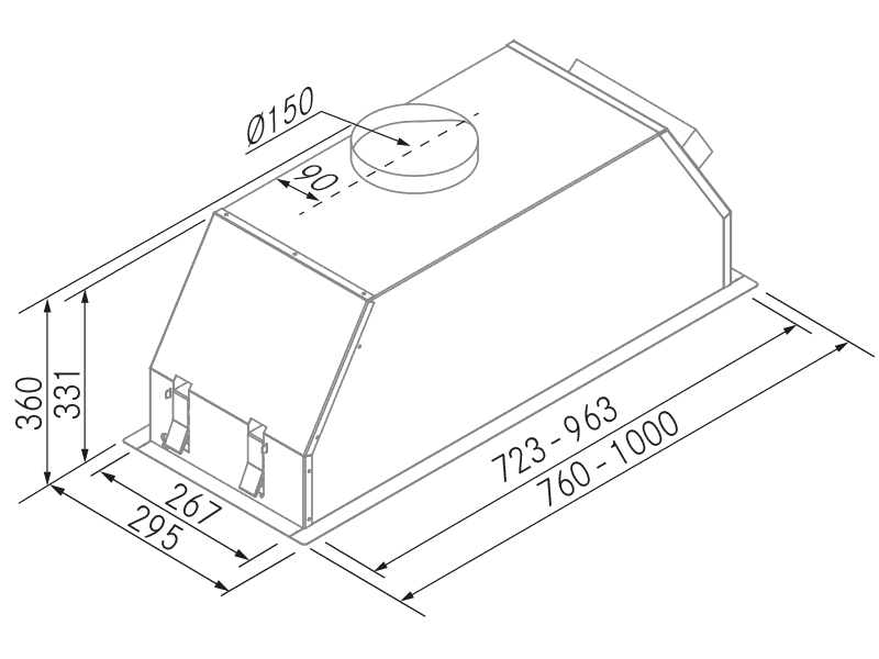 La campana de integración Vigor Prof con filtros Prof de laberinto garantiza una absorción máxima aumentando el rendimiento de la campana y permitiendo la recogida de grasas y aceites.