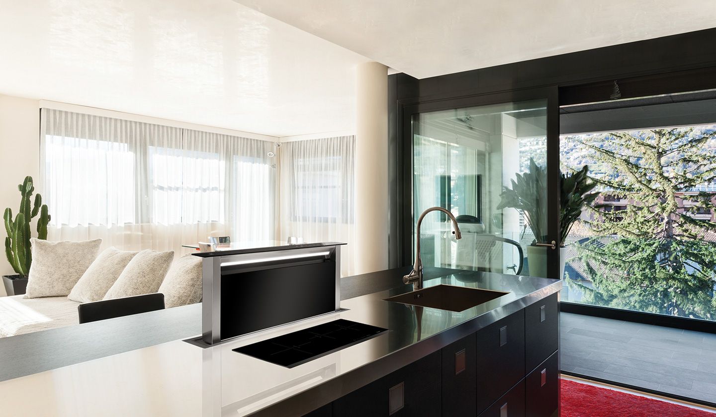 La campana de superficie Lift-Light NT de Frecan consigue una integración perfecta en la encimera con gran discreción. Dotada de una electrónica táctil y una superficie de cristal, la campana de cocina Lift-Light NT se pone en funcionamiento elevándose automáticamente para aspirar los humos quedando totalmente escondida al finalizar su uso.