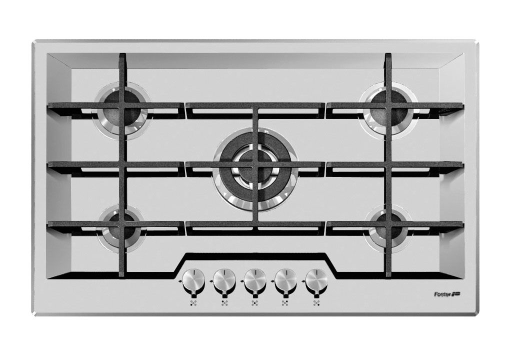 Placa de gas de 5 quemadores con rejillas de fundición, encendido eléctrico e instalación enrasada. Una gran placa de cocción a gas para los amantes de la cocina tradicional.